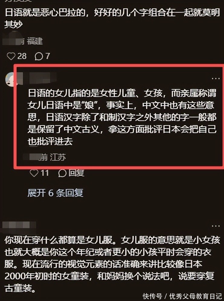 上网一查,大家觉得好像不太对劲。因为小学生穿的衣服吧,你就叫童装就可以,干嘛非得加个女儿服呢?原来这是日语的叫法。